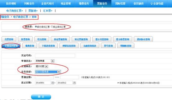 (2)若电票提示付款操作后,资金一直没有到账,请点击“票据业务-电子商业汇票-查询-交易流水查询”查看这笔单据状态,确认提示付款是否成功。若交易流水显示“复核中”,请使用主管盾进行单据审批。