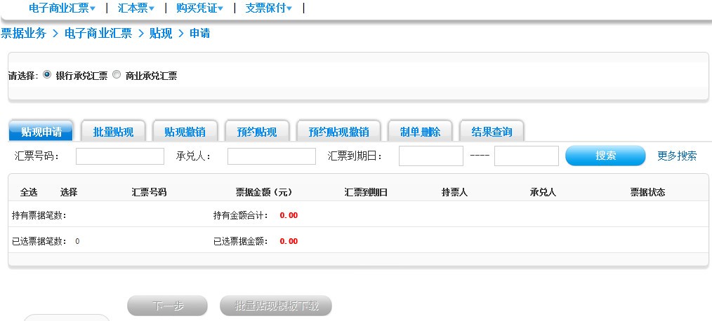 若票据未到期需要提前收款,可申请贴现。制单员点击“票据业务-电子商业汇票-贴现-申请”制单,然后按照票据流程进行复核。贴现申请成功后,开户行客户经理在CP系统进行相应操作,之后贴现金额转入客户的活期结算账户。