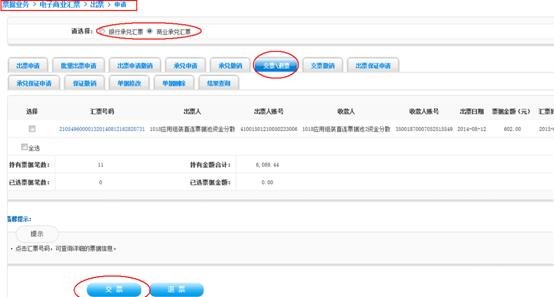 ③制单员登录企业网银通过“票据业务-电子商业汇票-出票-交票/退票”进行交票,按照票据流程进行复核,交票成功后票据状态为“提示收票待签收”,等待收款人签收票据。
