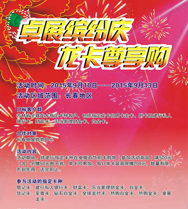 喜迎卓展16周年庆,建行邀您参加“卓展缤纷庆,龙卡尊享购”活动,让您尊享优惠!