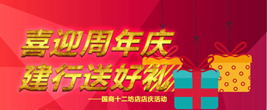 活动期间,建行龙卡持卡人在国商十二坊店刷卡消费(参加活动商品)满足一定条件,凭当日单卡签购单可获赠以下好礼,礼品数量有限,先到先得,送完即止: