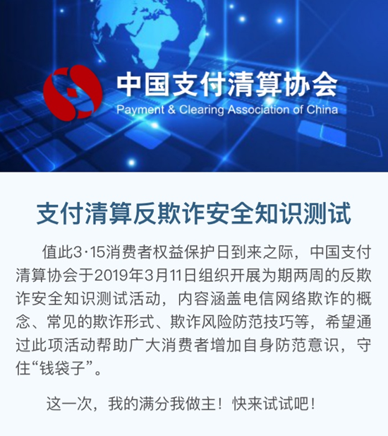 支付清算反欺诈安全知识答题挑战开始啦!