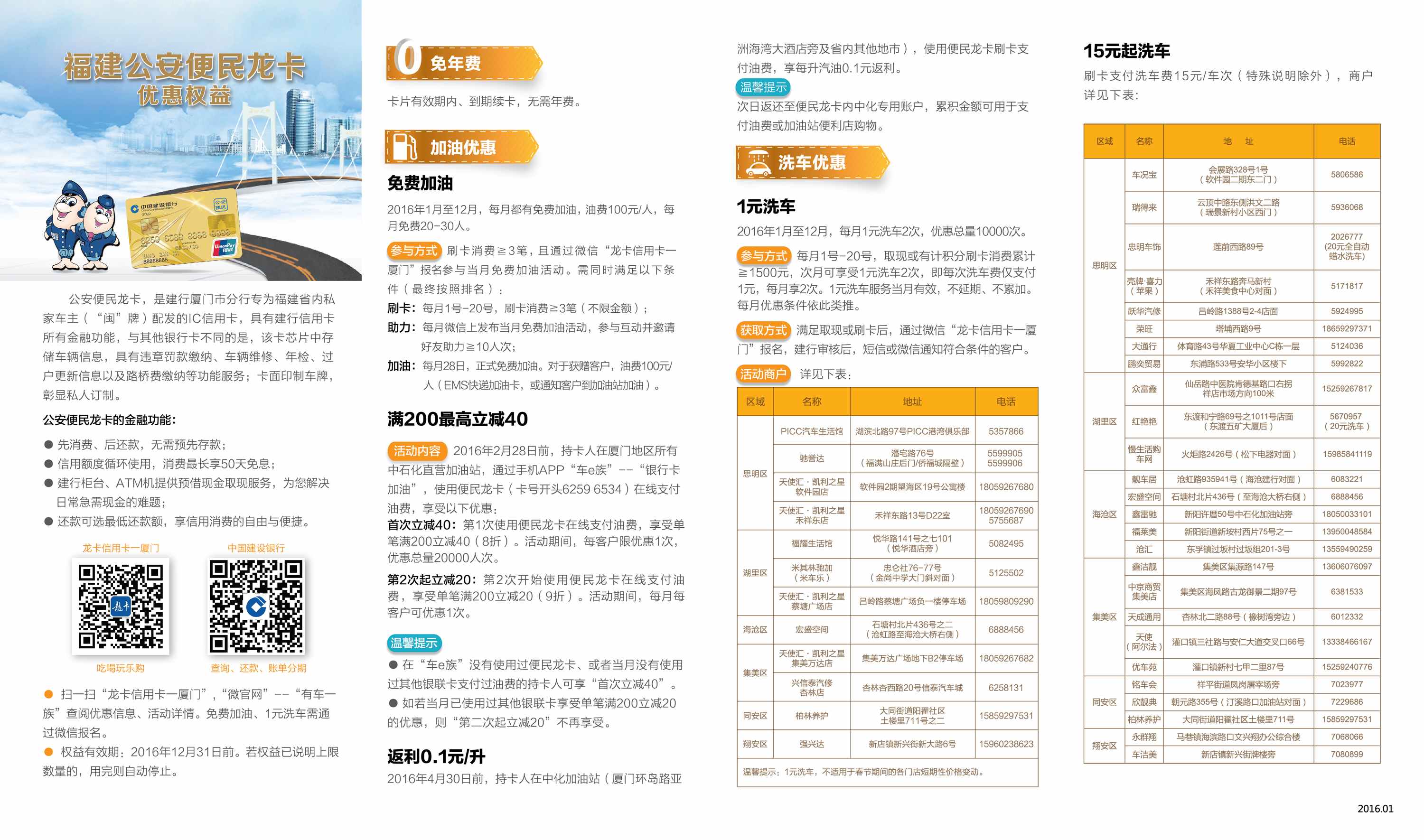 2016年公安便民龙卡IC信用卡洗车点信息表