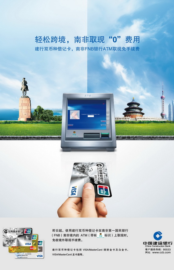建行双币种借记卡——轻松跨境,南非FNB银行ATM取现免手续费