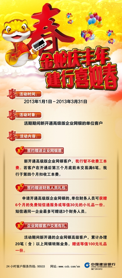 “金蛇庆丰年,建行喜迎春”-企业网上银行开户有礼!