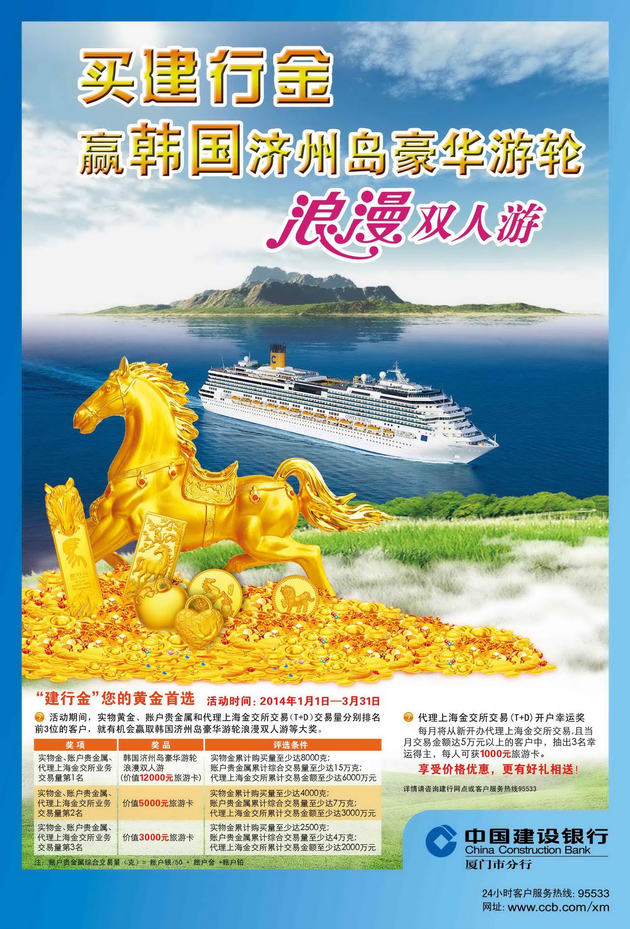 买建行金,赢韩国济州岛豪华游轮浪漫双人游